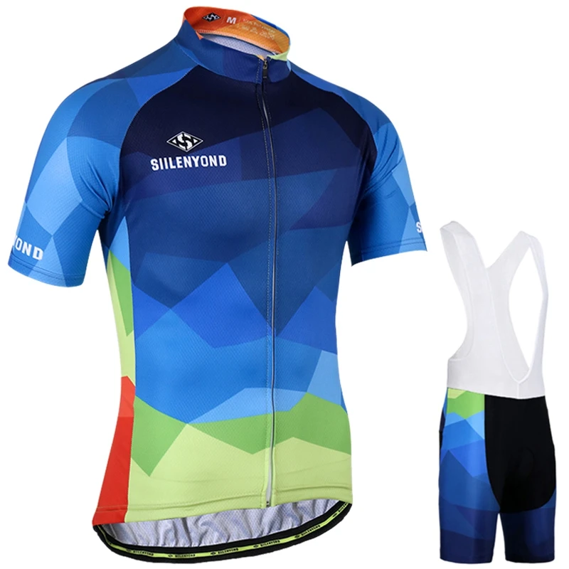 SIILENYOND Summer Anti-UV Cycling Jersey Set Bicycle Clothing Suit with 3D Gel Pad Breathable Cycli