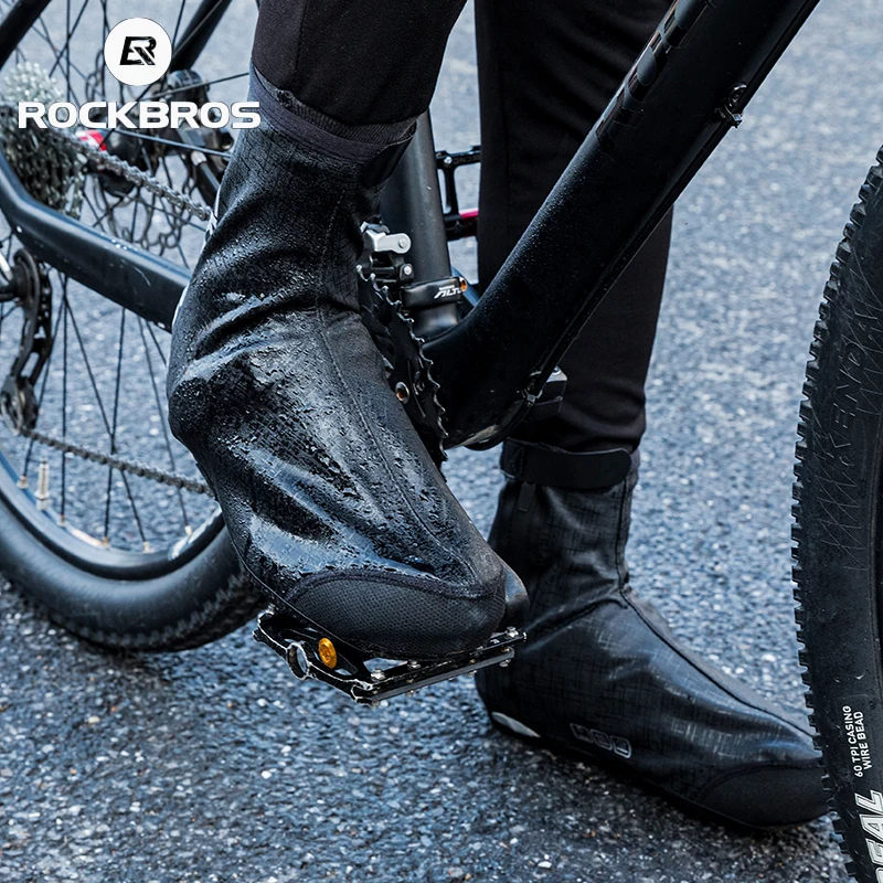 ORIGINAL ROCKBROS Cycling Shoe Covers Windproof Winter Warm MTB Road Bike Shoe Cover Bicycle Waterproof Refl